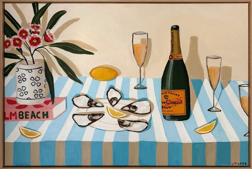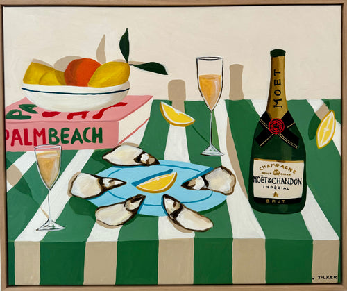 “Bubbles and oysters on pink and yellow" Original Artwork